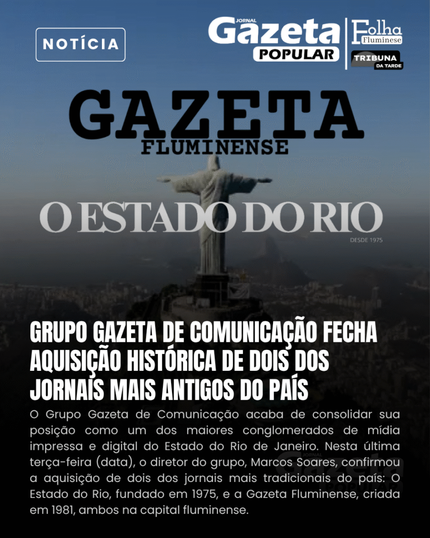 O Grupo Gazeta de Comunicação acaba de consolidar sua posição como um dos maiores conglomerados de mídia impressa e digital do Estado do Rio de Janeiro. Nesta última terça-feira (data), o diretor do grupo, Marcos Soares, confirmou a aquisição de dois dos jornais mais tradicionais do país: O Estado do Rio, fundado em 1975, e a Gazeta Fluminense, criada em 1981, ambos na capital fluminense.