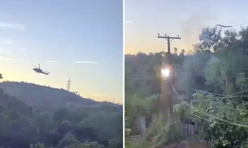 Rio de Janeiro  Na manhã desta quinta-feira (20), um helicóptero da Polícia Civil do Rio de Janeiro foi alvo de disparos enquanto prestava apoio a uma diligência em Duque de Caxias, na Baixada Fluminense. Durante a ação, a aeronave precisou fazer uma manobra evasiva para escapar dos tiros e acabou tocando na rede elétrica, provocando duas explosões.