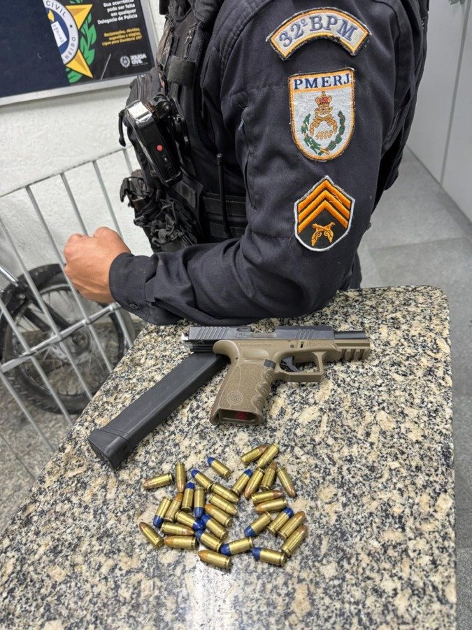 O homem desembarcou do veículo e seguiu a fuga a pé. No caminho, ele descartou a arma em um terreno baldio. Após uma busca pela área, os agentes conseguiram encontrar a pistola calibre 9 mm da marca Ramon e com numeração suprimida. Também foi encontrado um kit rajada.