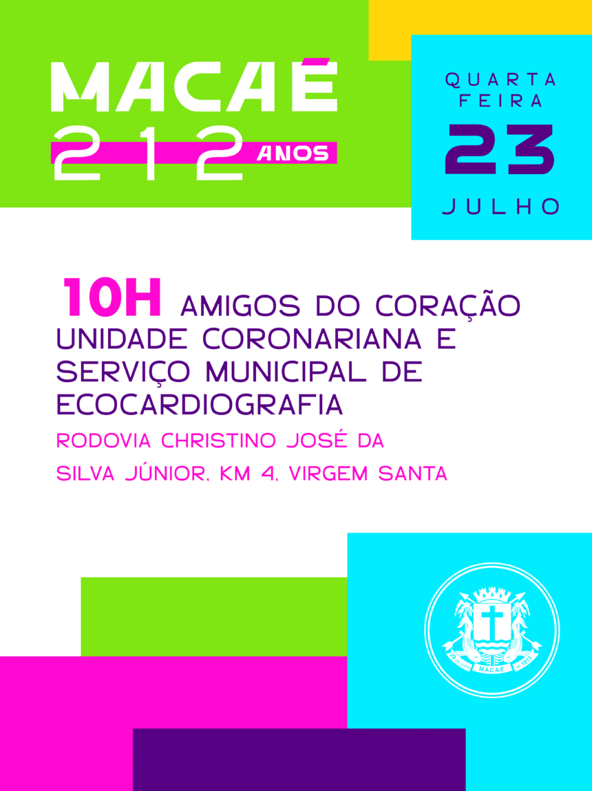 Já na terça-feira (22) será realizada a inauguração da Base do Programa Segurança Presente, na Imbetiba, com a cerimônia sendo realizada às 10h. Na quarta-feira (23), será a vez dos “Amigos do Coração” – Unidade Coronariana e Serviço Municipal de Ecocardiografia, às 10h, no bairro Virgem Santa.