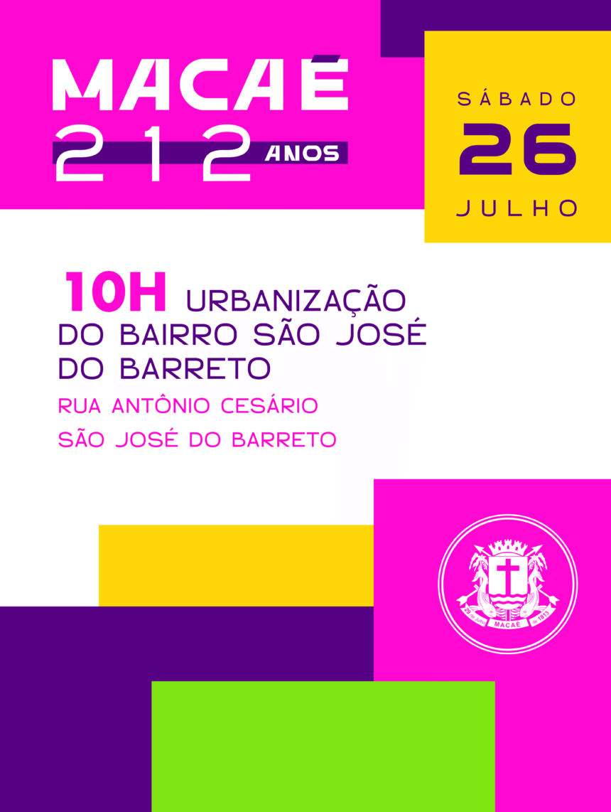 A cidade Macaé no norte fluminense do Estado do Rio de Janeiro, conhecida como “A princesinha do Atlântico” e “Capital Nacional do Petróleo e da Energia”. Vai comemorar 212 anos de emancipação política-administrativa no próximo dia 29 de julho. E para comemorar, a prefeitura da cidade preparou diversas inaugurações na próxima semana, com obras e projetos que vão beneficiar toda a população macaense.