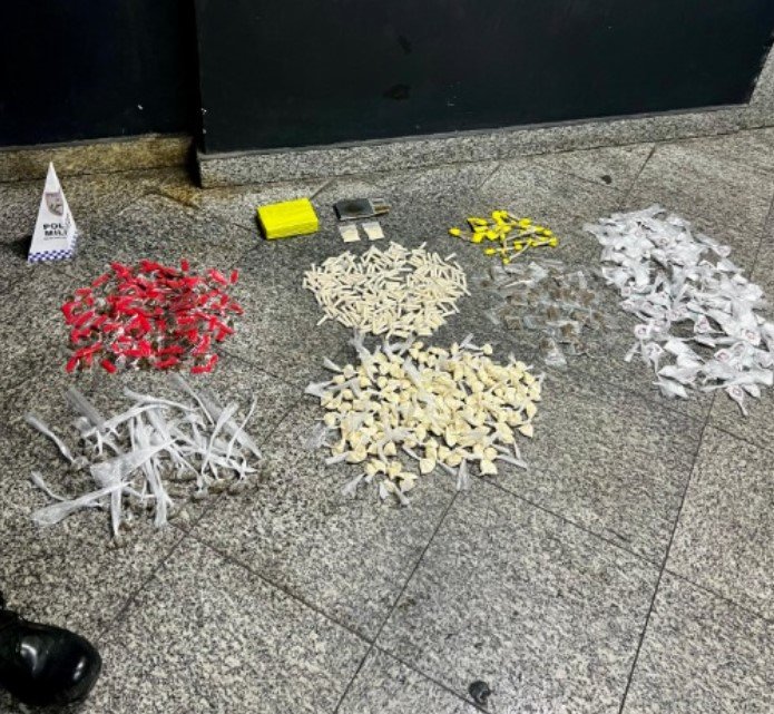 Os entorpecentes foram encontrados na Avenida São Fidélis. De acordo com o balanço da operação, foram apreendidos 495 pinos de cocaína, 242 buchas de maconha, um tablete pequeno de maconha com aproximadamente 850 gramas e uma balança de precisão.