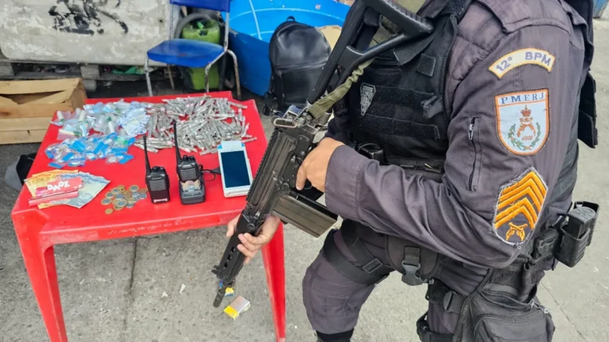 Polícia encontra máquina de cartão usada para pagamento de drogas em Niterói durante operação no Morro do Preventório.