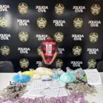 Ao realizarem uma busca do veículo, os agentes encontraram 10.000 pinos de cocaína, 3.300 trouxinhas de maconha, 3.100 pedras de crack, e 1.000 comprimidos de ecstasy, além de 5 rádios transmissores com baterias e antenas, tudo oculto nos bancos traseiros e no porta-malas.